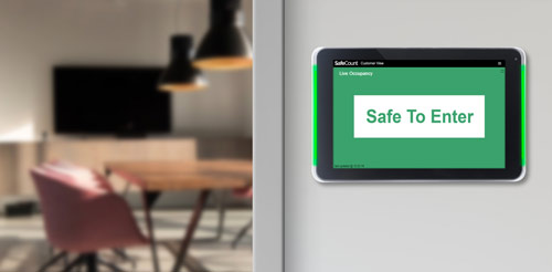 When the configurable occupancy limit is met, connected display signage updates in real-time to alert and notify building users that the area is at capacity and not safe to enter.